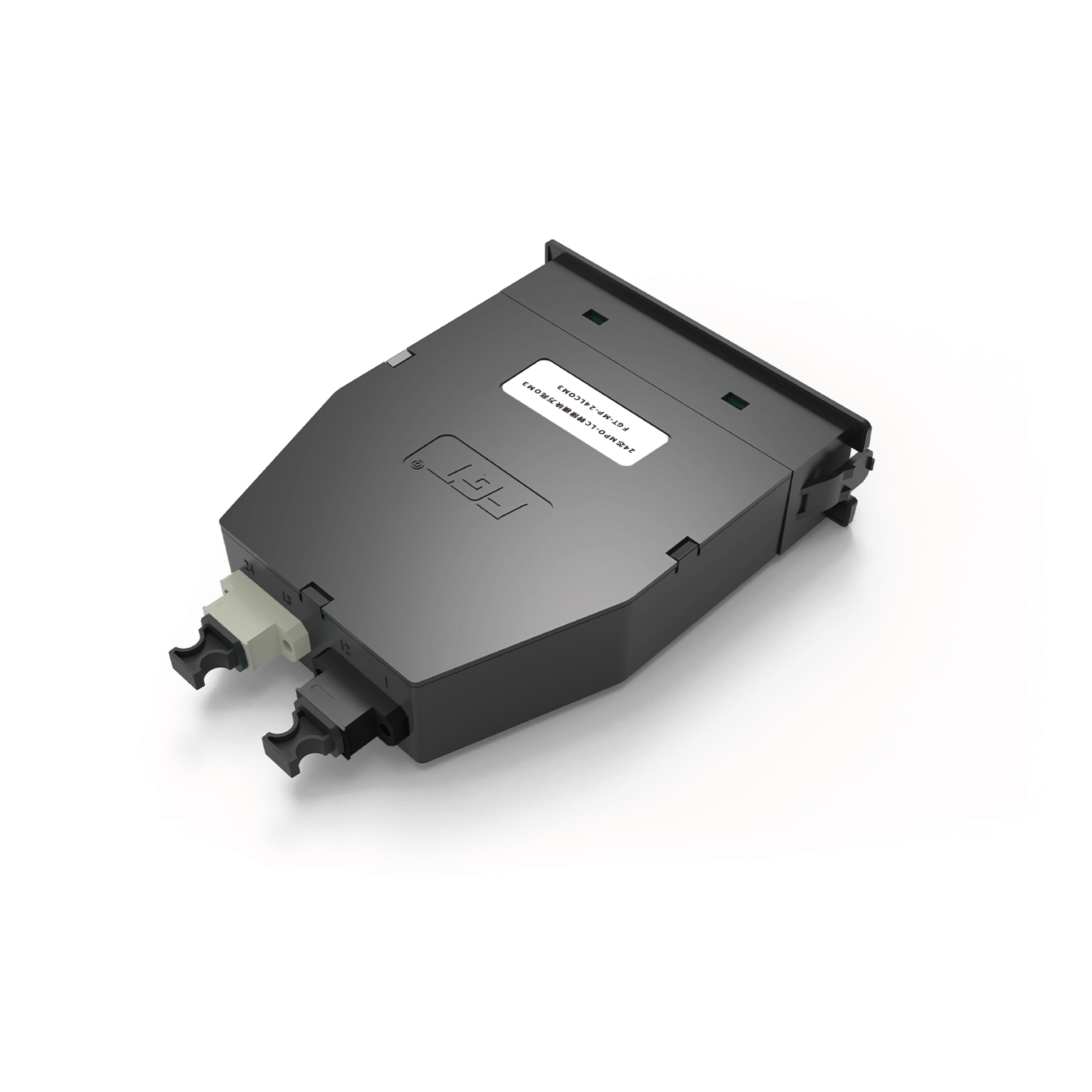 MTP/MPO-LC模塊內置分支跳纖,用于將主干光路終端的24芯MPO/MTP適配器分支為LC適配器。LC適配器位于模塊前端,背部配置2個MPO/MTP適配器,此模塊可快速安裝于MPO系列機架式光纖配線箱中,用于主干預端接光纜跳接與端接。