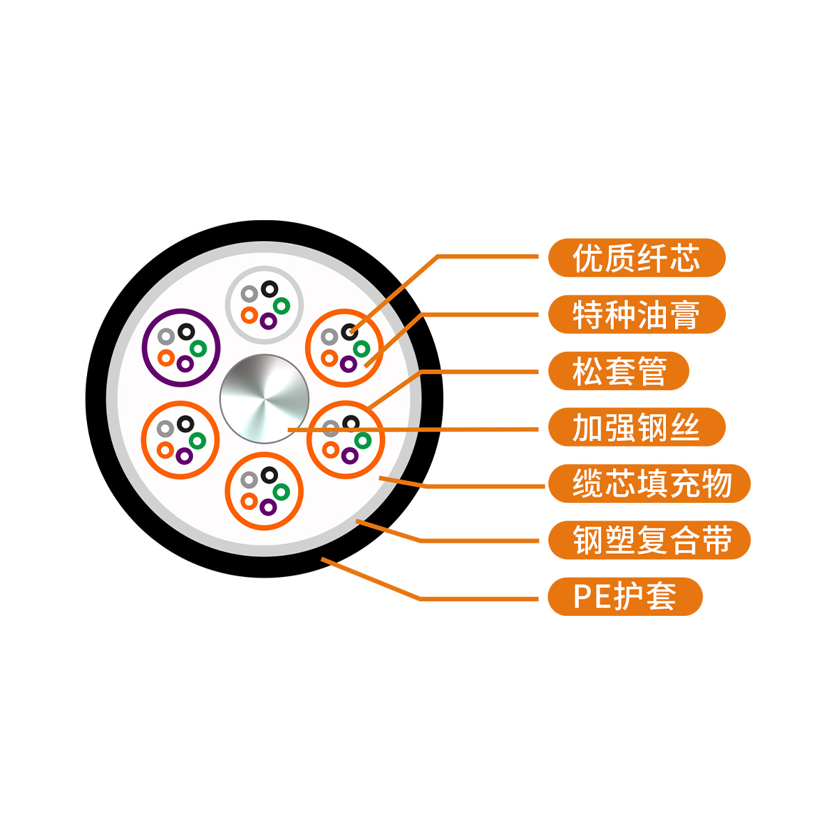 金屬加強構件松套層絞填充式鋼——聚乙烯粘結護套通信用室外光纜